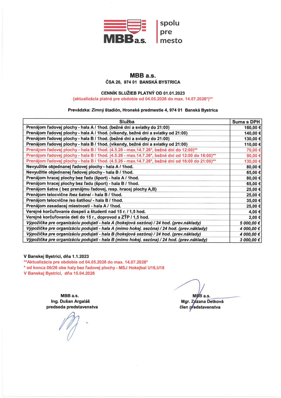 Rozpis ľadovej plochy